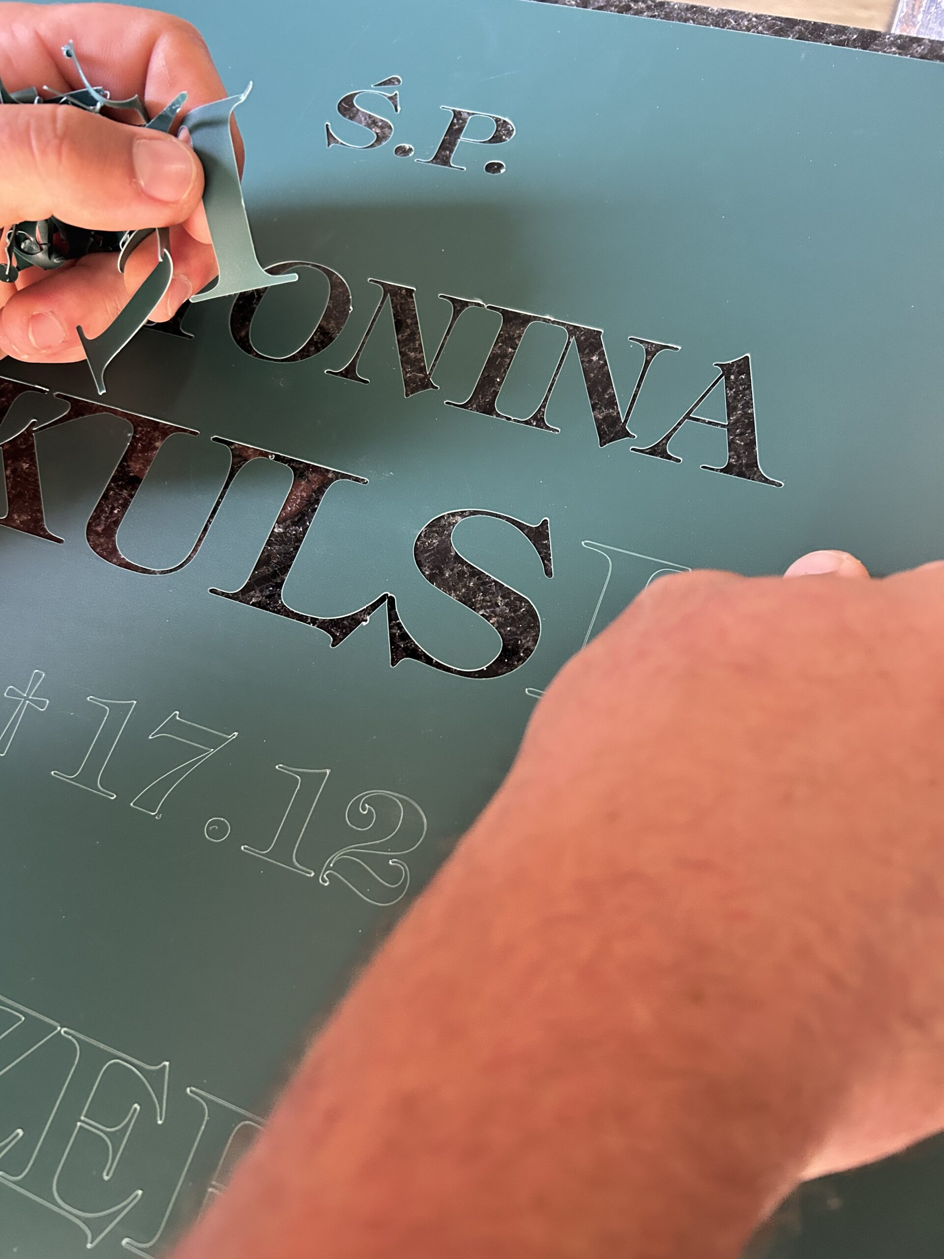 Specjalizujemy się w liternictwie w kamieniu metodą piaskowania, gwarantując trwałość i precyzję wykonania.